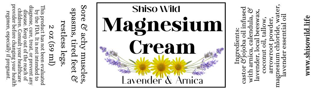 Magnesium is responsible for over 100 functions in the body, but it is most popularly known for helping relax muscles and reduce muscle pain. Arnica helps ease inflammation and pain. Lavender relaxes the senses. This cream also is wonderful for dry skin as the castor oil is thick and rich in its own way.